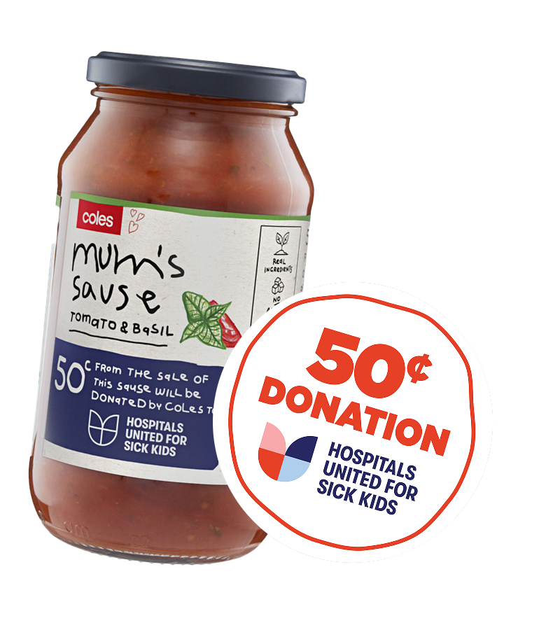 Made from real ingredients with no artificial colours or flavours, these are a favourite of the whole family. Coles donates 50 cents from every Mum's Sause sold all year round to Hospitals United for Sick Kids on their mission, so don’t forget to add these delicious delights to your grocery shop.